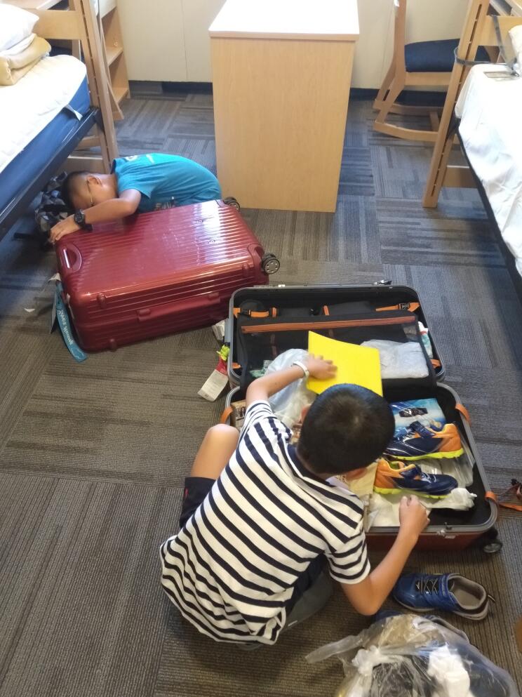 T T被分配与一位台湾来的小朋友同住,入住以后,中国来的同学们大都立即上床睡觉,倒时差。但是T T却不着急休息,他先是整理老师讲解的注意事项,然后整理自己的旅行用品,水杯,笔记本,个人洗漱用品等,将这些一一安放在自己认为合适的位置,看到他那么疲惫却又从容不迫的样子,小编想动手帮他整理,T T却坚定地谢绝了,他说自己的事情应该自己做,我能做好!