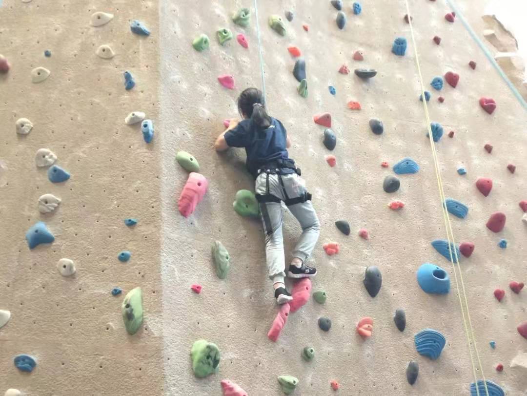 W同学,是一个非常活泼的女孩子。她有一双黑亮的眼睛,总是不吝啬她的微笑。在一次攀岩活动中,开始有点胆怯,在老师鼓励下尝试着小心翼翼的一点点攀爬,几经失败,坚持不懈,最后终于爬到顶峰。小编最难忘记的是她在攀到顶峰时自信的微笑。