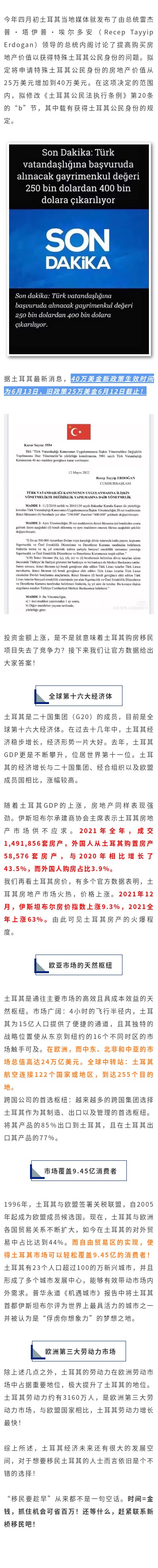 最新消息,土耳其40万美金新政策生效时间为6月13日